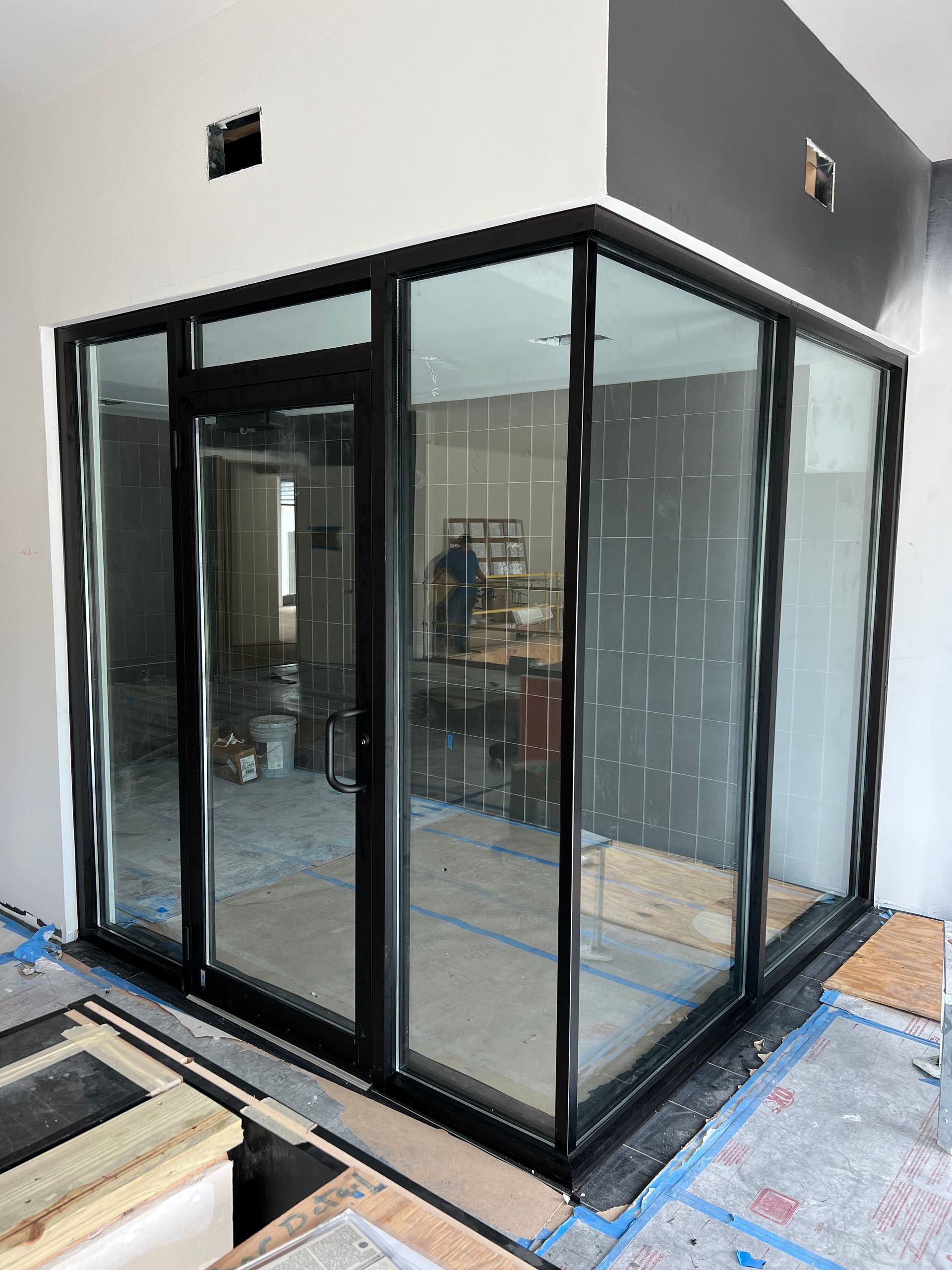 If you're running some kind of studio or exercise facility, you may need long mirrors on your walls. Also interior glass partitions, sneeze guards, and sliding glass windows are no problem for our committed crew.